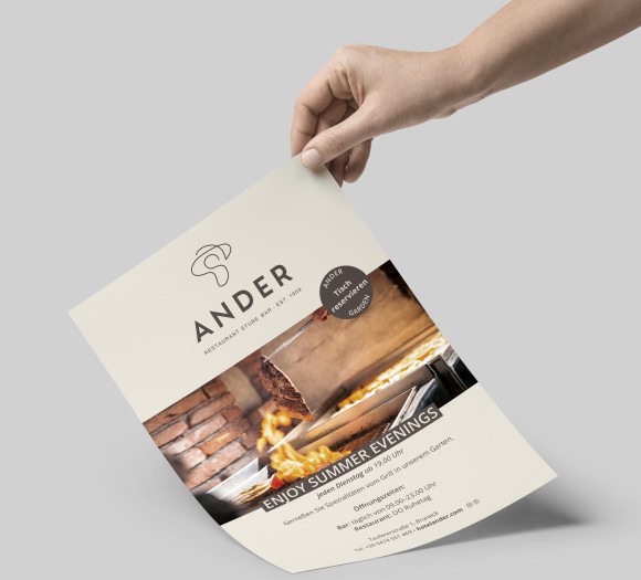 Das ehemalige Hotel Andreas Hofer in Bruneck heißt jetzt ANDER und lebt von einer durchdachten Strategie und einem Konzept mit Hand und Fuß gänzlich neu auf. Wir haben mit viel Enthusiasmus ein Logo und ein Emblem gestaltet, das sich an jenem vom Hotel POST und Restaurant, Bar & Lounge COSMO grafisch anschmiegt. Die Social Media Kommunikation, die Gestaltung der Plakate für die Innenstadt und den Stadtzug von Bruneck übernehmen wir natürlich auch gleich mit dazu, und das ist längst noch nicht alles …