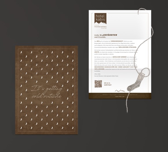 Das Hotel Kabis in Villnöss hat neben Fotos, Videos und extravagantem Storytelling seine besonders kreative Weihnachtspost von uns erhalten. Wir designten die Speise- und Barkarten, die Innenbeschilderung – das alles natürlich ausnahmslos mit Leidenschaft. Alles eben, was ein Hotel so braucht, wenn es seinem Auftreten einen Reset verpassen möchte.
