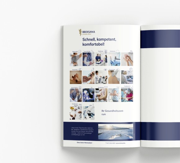 Präzise und sensibel sein – das fordert die Brixsana private clinic. Wir dürfen immer wieder Inserate sowie PR-Artikel gestalten und die Social Media Kommunikation dieser erfolgreichen Südtiroler Privatklinik strategisch, grafisch und textlich ausarbeiten. Dabei lernen wir eine Menge über Medizin und staunen immer wieder über die heutigen Möglichkeiten der Technik.